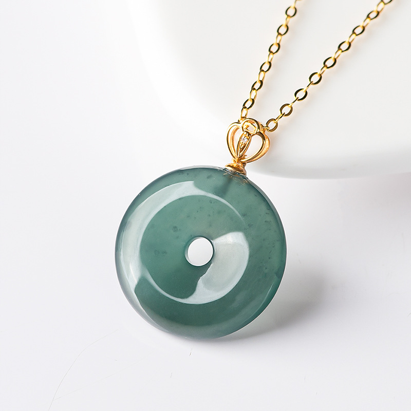 翠莹福高档天然A货翡翠蓝水平安扣吊坠冰种玉石18K镶女士项链D282 - 翠莹福珠宝旗舰店