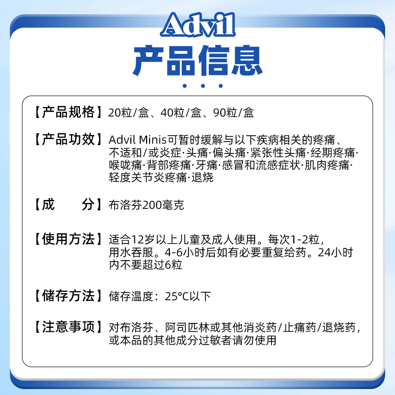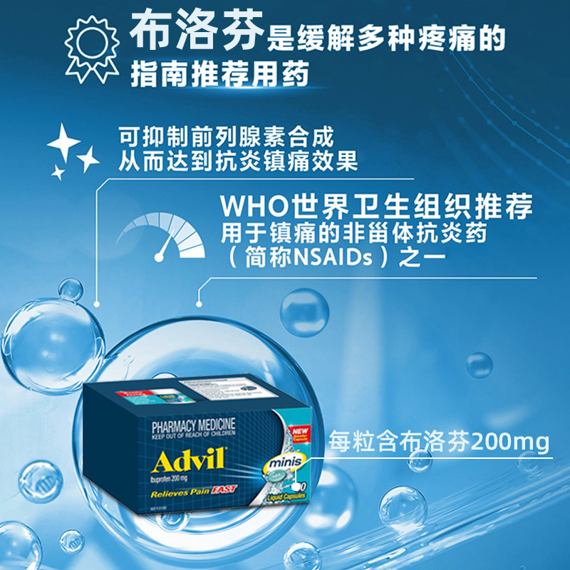澳洲进口Advil布洛芬迷你液体缓释胶囊退烧药消炎止痛药痛经头痛 - TomLanePharmacy海外旗舰店