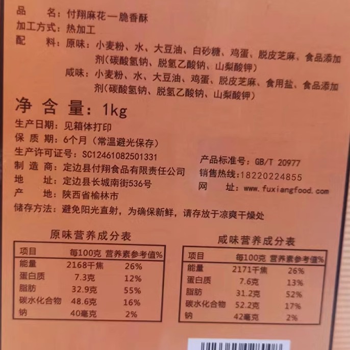 陕西付翔小麻花陕北特产零食小吃礼盒定边脆香酥麻花1kg内置小袋 - 裕农塬上陕北特产