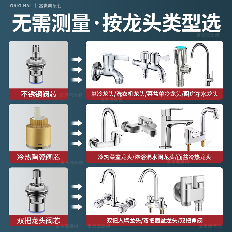 不锈钢水龙头阀芯通用型单冷快开洗脸盆龙头三角阀开关修配件大全 - 赢者旗舰店