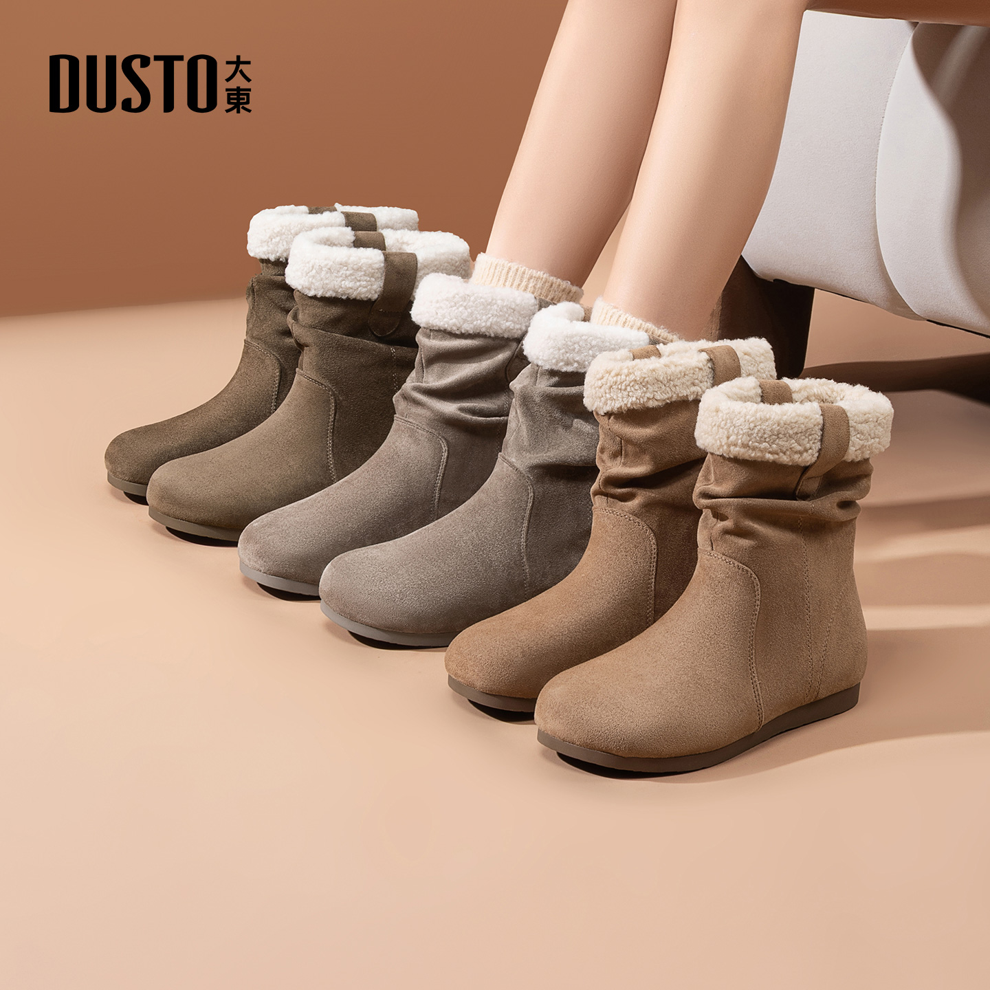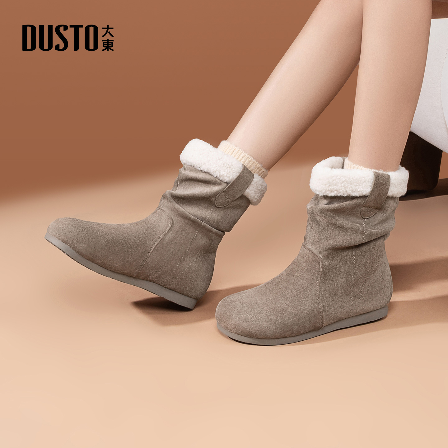 大东女鞋堆堆靴2025冬季新款加绒中筒靴女靴美拉德时装靴复古圆头 - DUSTO大东时尚旗舰店