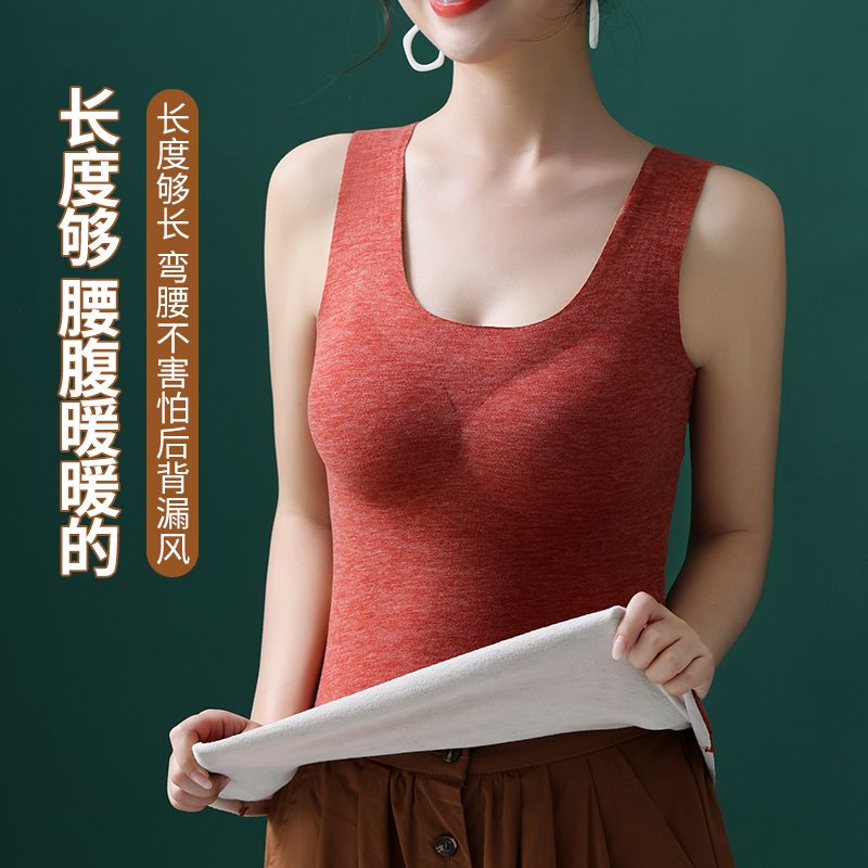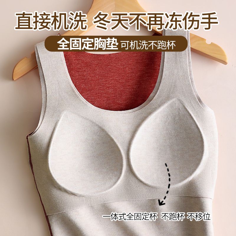 德绒无痕保暖背心女士款带胸垫加厚加绒打底内穿秋冬季防寒棉内衣 - 锤那丽莎精品店