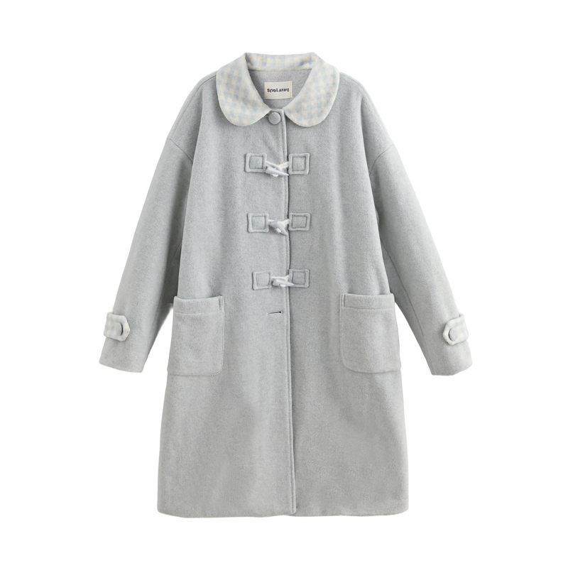 森女部落学院风娃娃领毛呢外套女2025新款设计感拼色宽松大衣冬季 - 森女部落SNBL