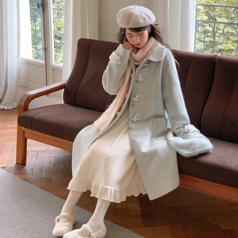您的位置:他他商城  >   >  森女部落学院风娃娃领毛呢外套女2025新款设计感拼色宽松大衣冬季