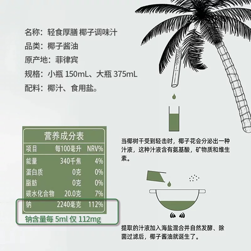 菲律宾进口无麸质椰子调味汁无小麦无大豆桥本低敏儿童酱油小瓶