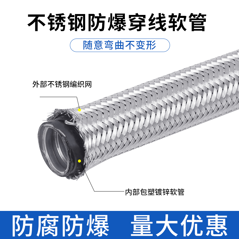 304不锈钢防爆穿线软管电线保护套管电缆保护软管编织防爆穿线管