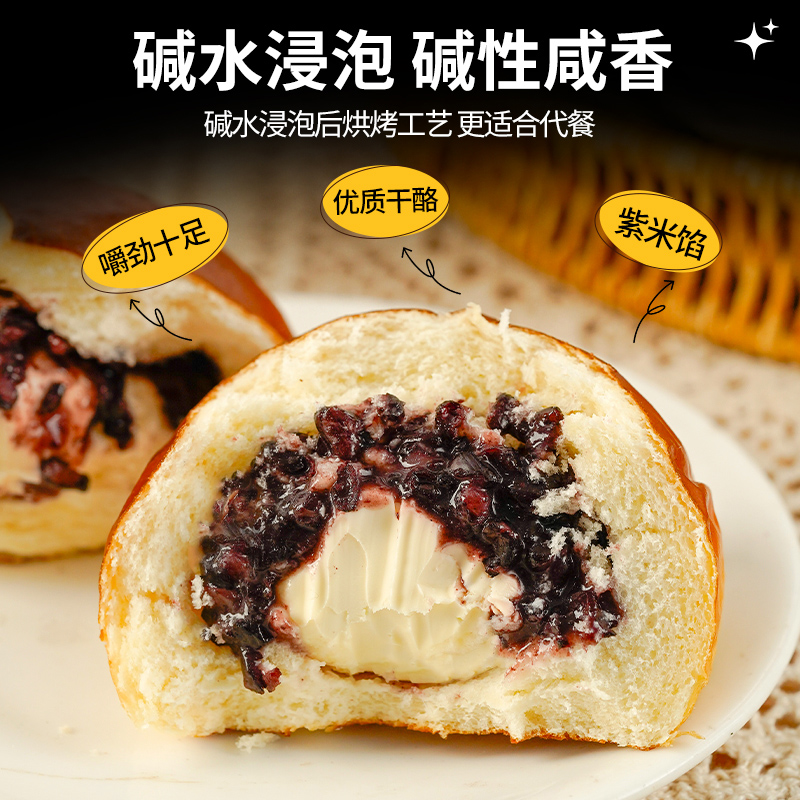 全麦碱水面包奶酪球紫米芝士夹心贝果低减无蔗糖卡脂早餐饱腹代餐