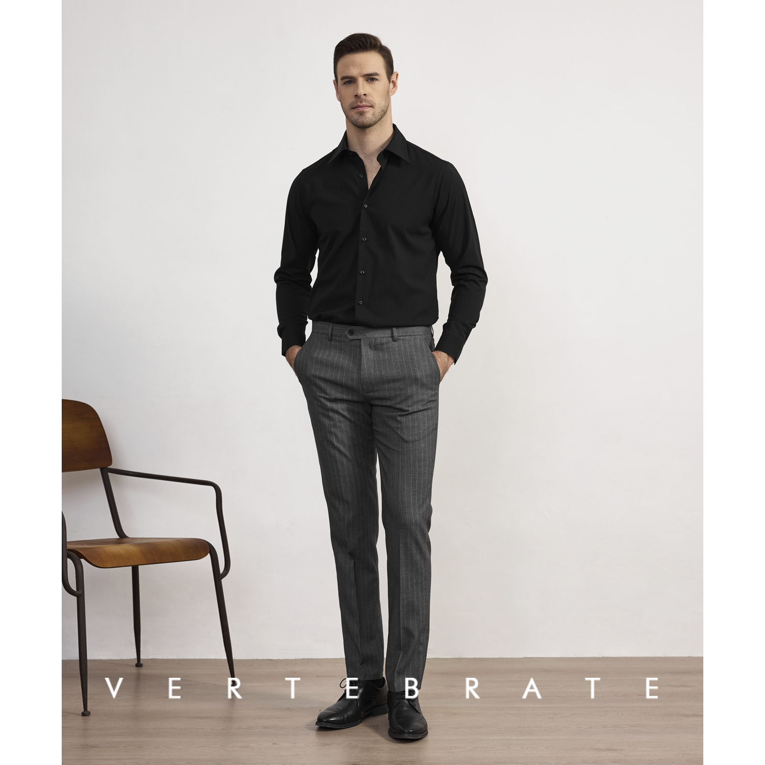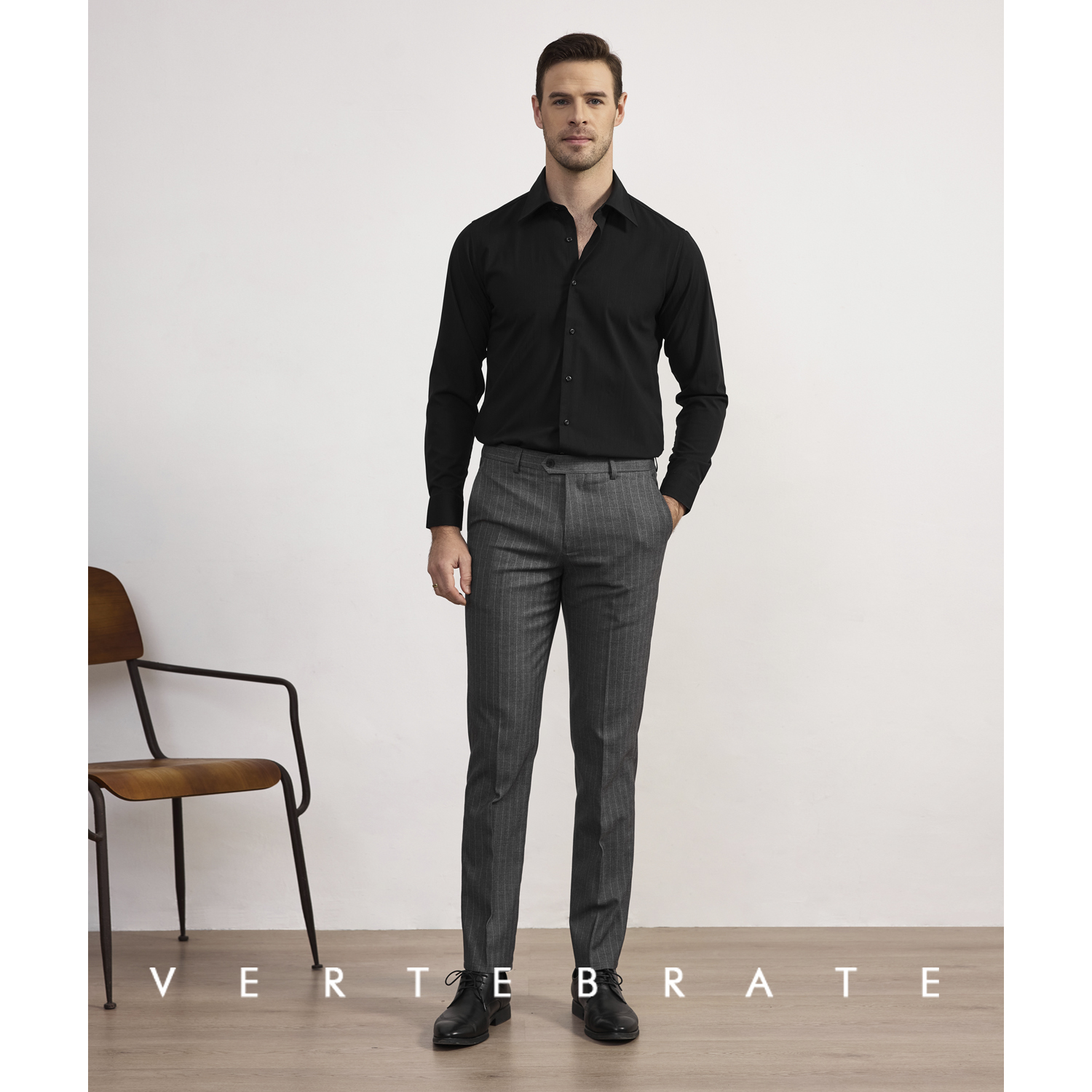 脊椎动物男装商务男士暗肌理条纹修身西裤春秋款显腿长基础长裤 - 脊椎动物男装VERTEBRATE