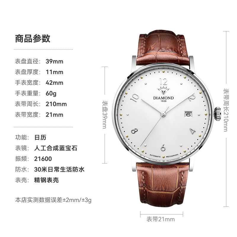 上海钻石手表男自动机械表防水时尚日历皮带6101官方正品男腕表 - 钻石国表专卖店