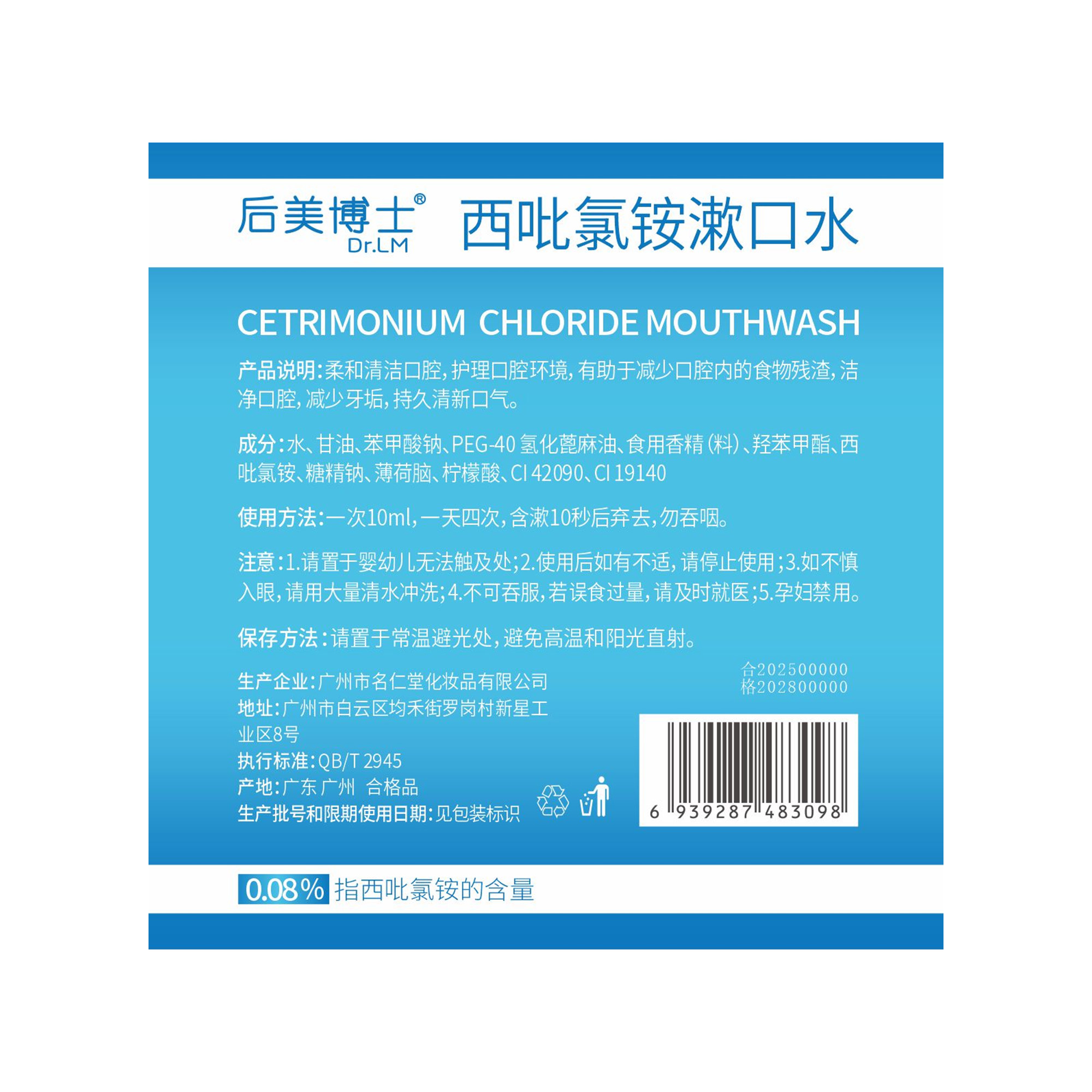 后美博士cpc西吡氯铵漱口水杀菌去口臭持久留香口腔含漱液便携式