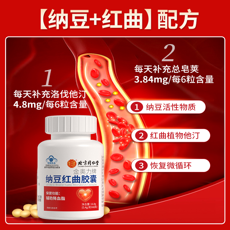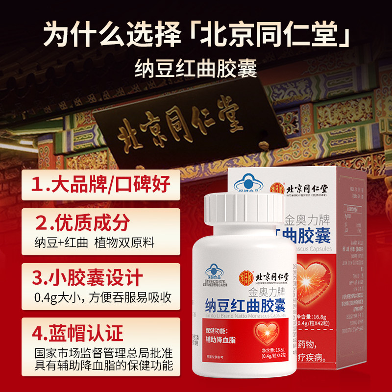 北京同仁堂纳豆激酶红曲胶囊辅助降血脂搭疏通官方旗舰店正品血管 - 阿里健康大药房