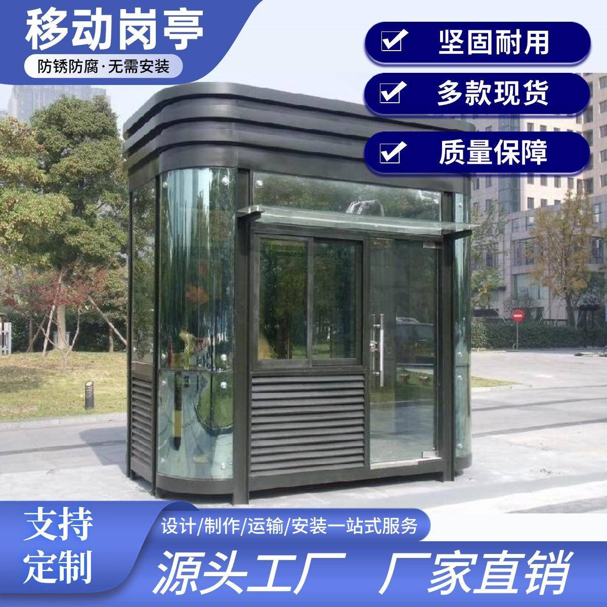 您的位置:他他商城  >   >  厂家供应保安亭户外移动钢结构岗亭不锈钢停车场收费治安亭门卫室
