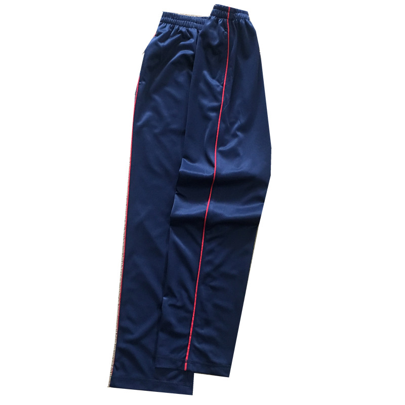定制春夏秋季款黑深浅藏青镶红色细杠直筒运动校裤舒适透气长裤子 - 校服大全