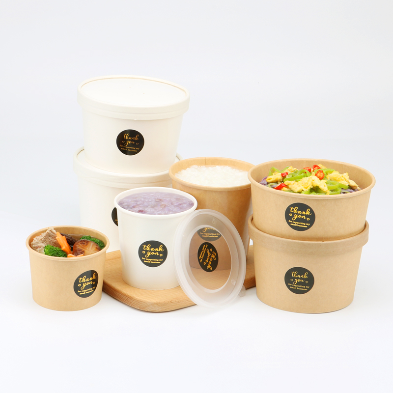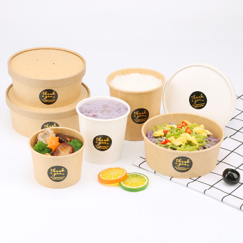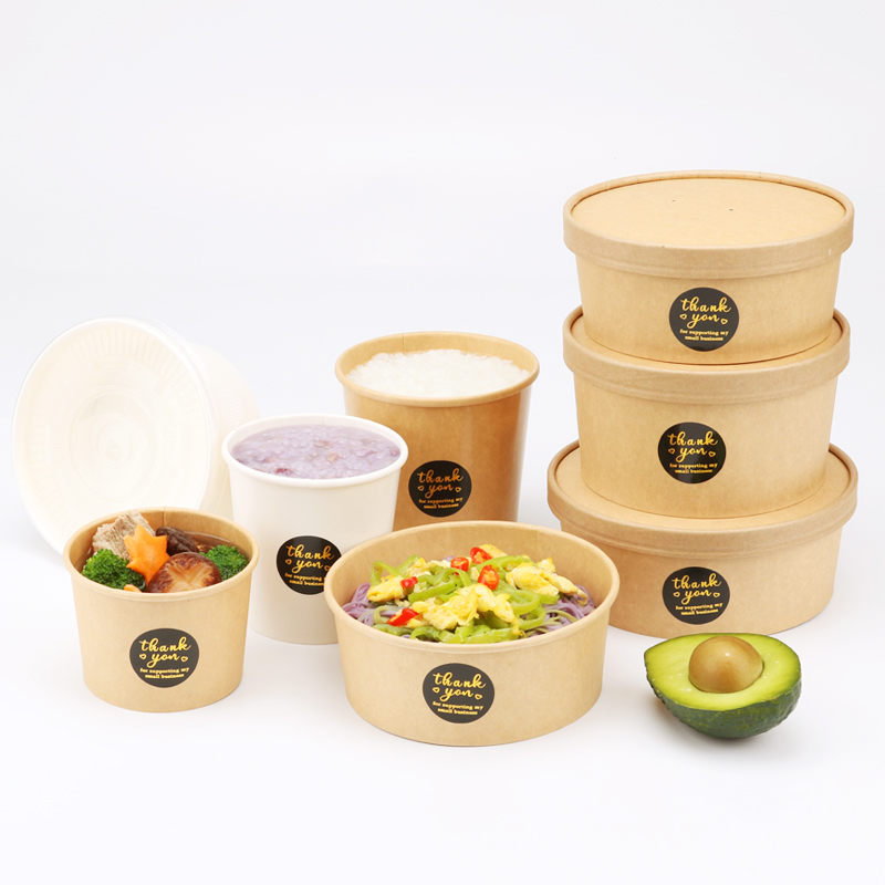 一次性牛皮纸粥碗粥桶沙拉碗外卖打包盒带盖纸碗圆形汤杯汤桶汤碗 - 艺之博工厂新概念店
