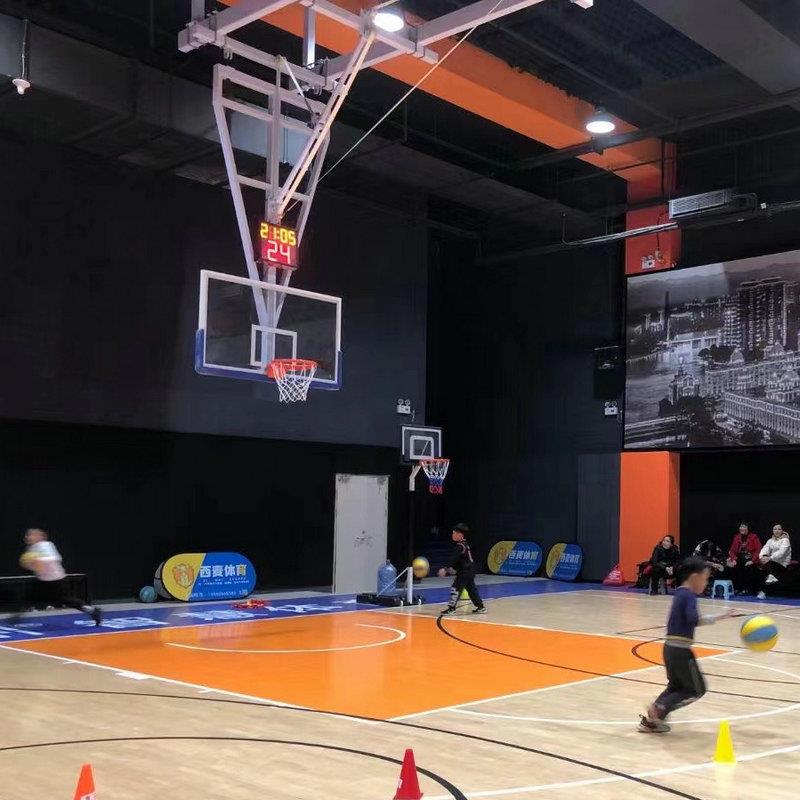 房顶电动悬空篮球架室内学校篮球场体育馆可折叠伸缩升降篮球架 - 梦源机械