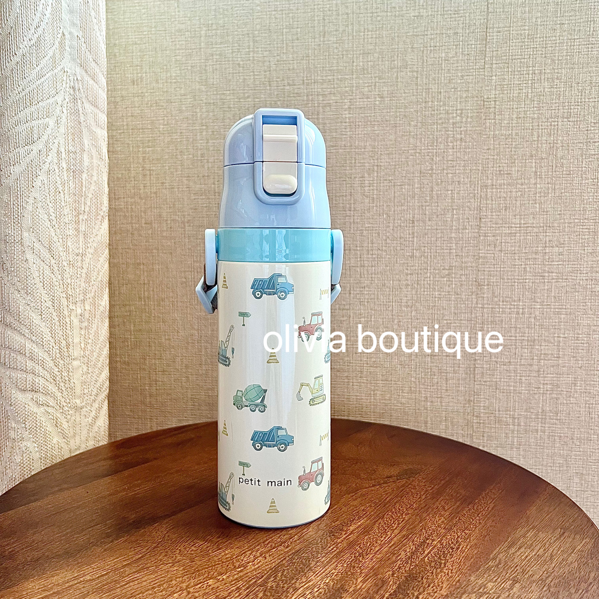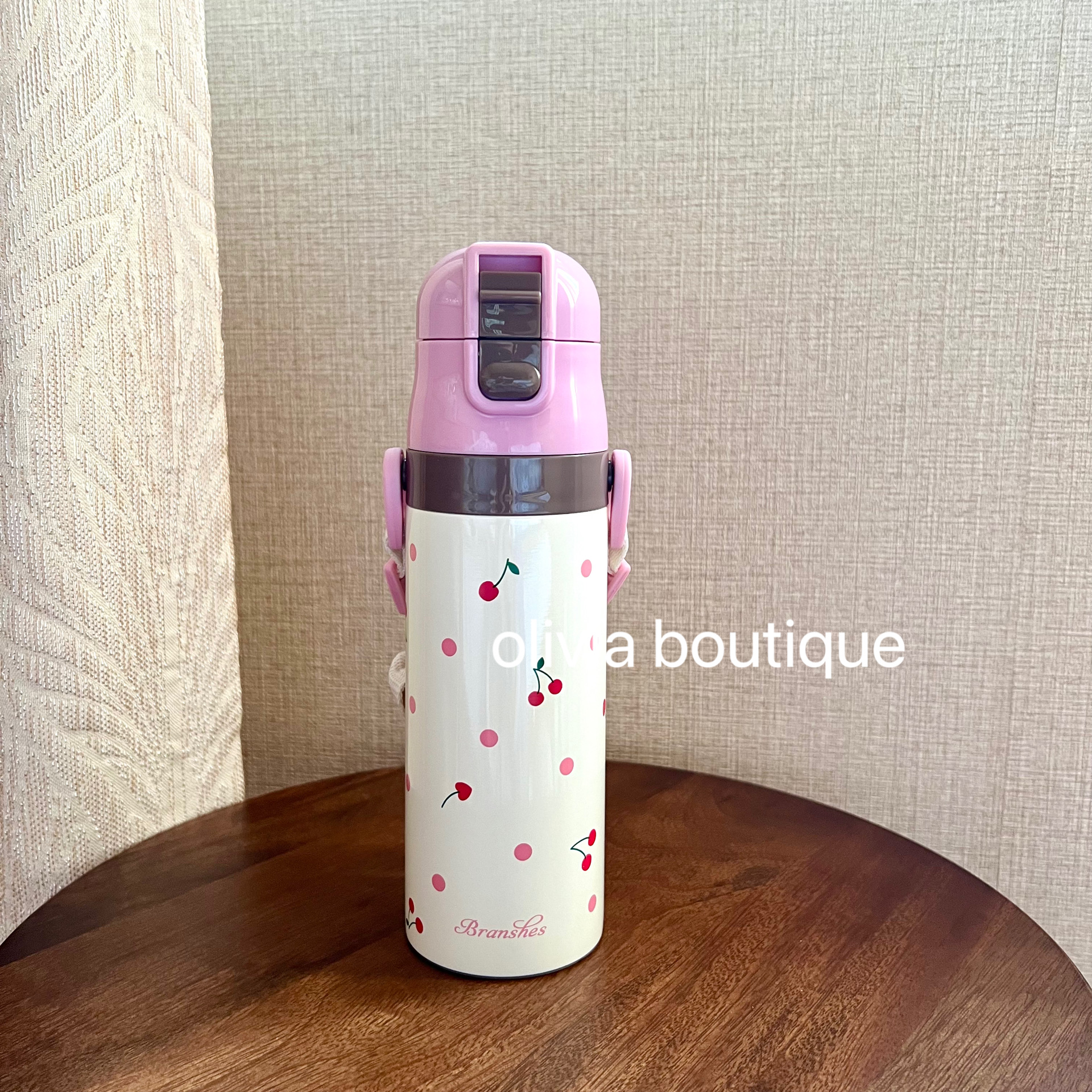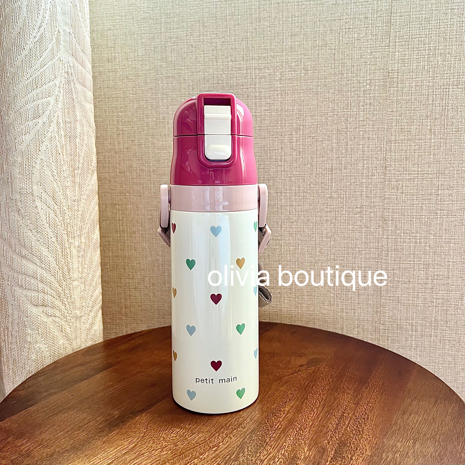 现货 日本本土限定petit main樱桃动物插画儿童肩带不锈钢保温杯
