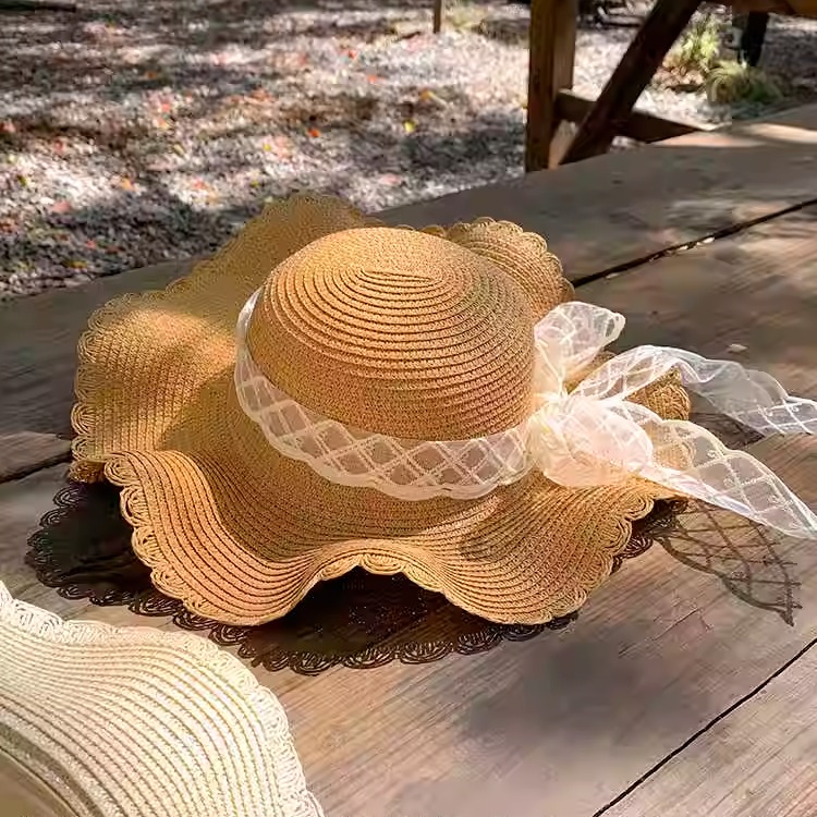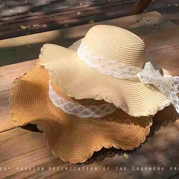 您的位置:他他商城  >  配饰  >  蝴蝶结蕾丝草帽女夏天海边沙滩大帽檐度假风防晒遮阳草编太阳帽子