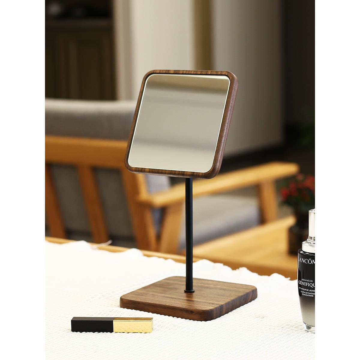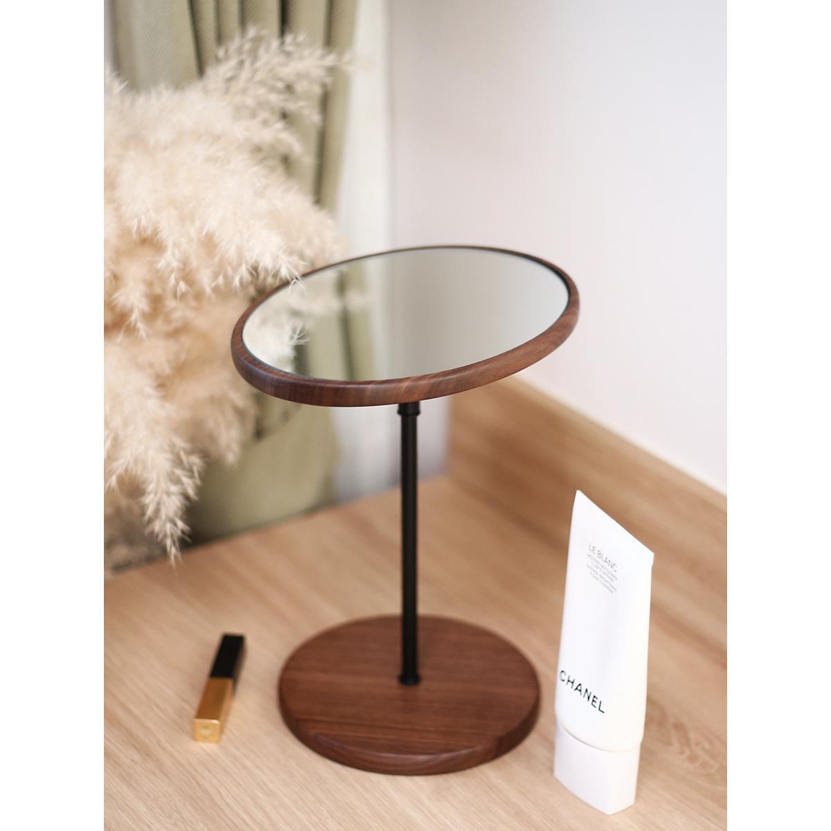 黑胡桃实木化妆镜台式桌面折叠梳妆镜便携随身简约原木高清镜 - 墨染百货店5