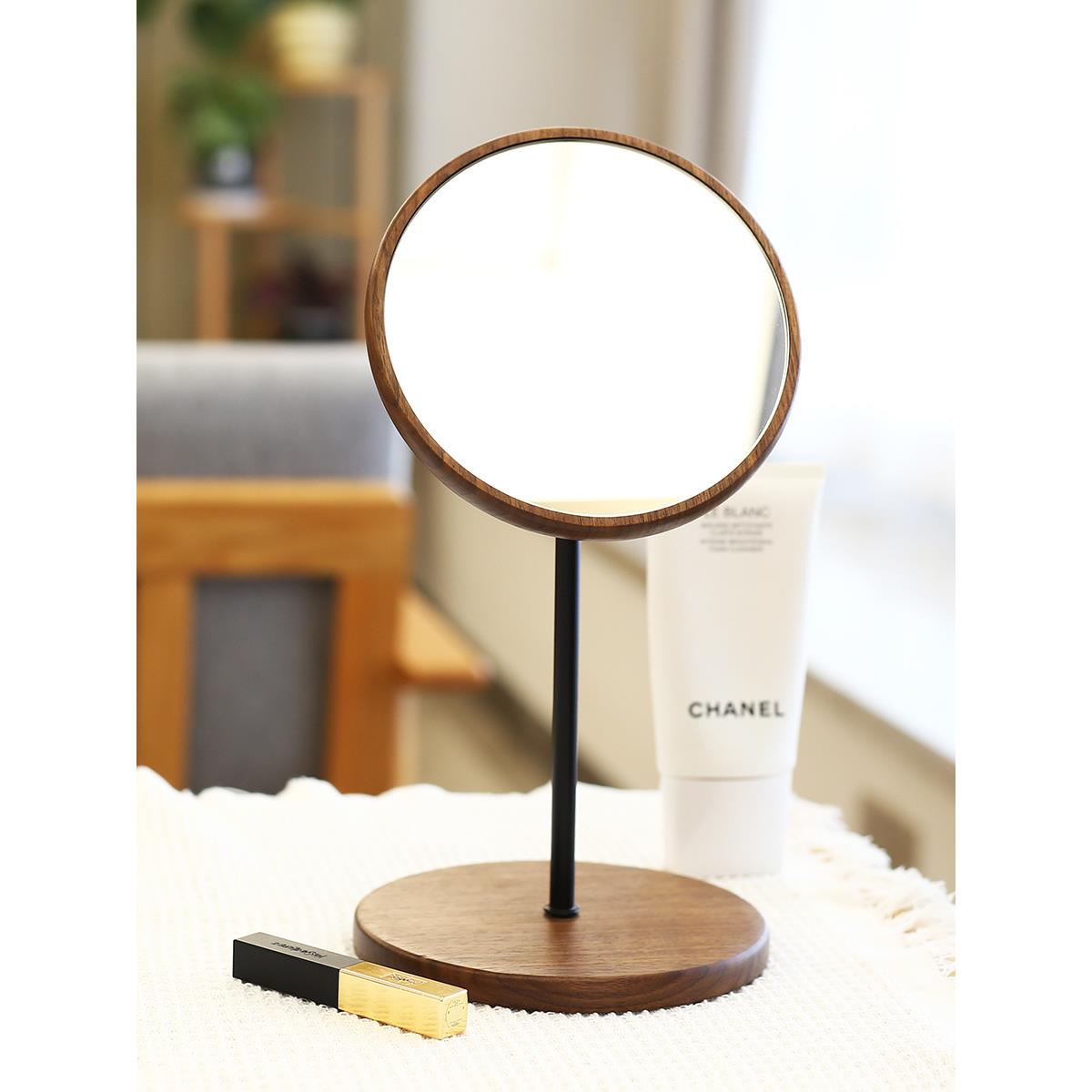 您的位置:他他商城  >   >  黑胡桃实木化妆镜台式桌面折叠梳妆镜便携随身简约原木高清镜