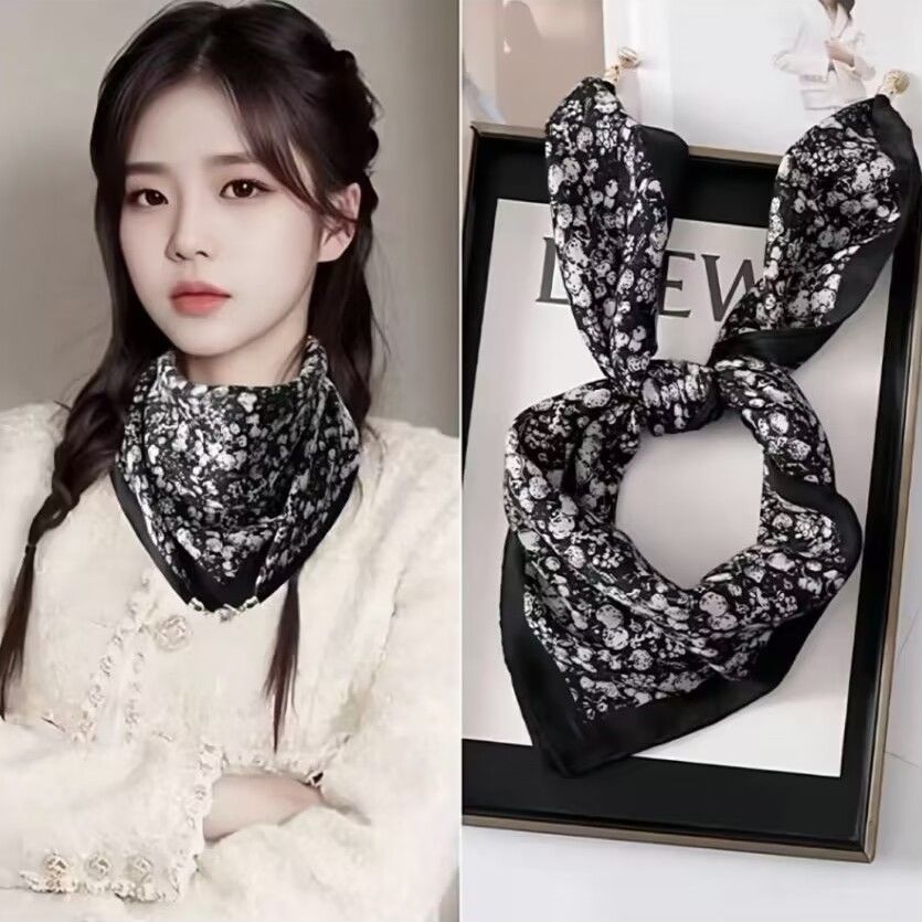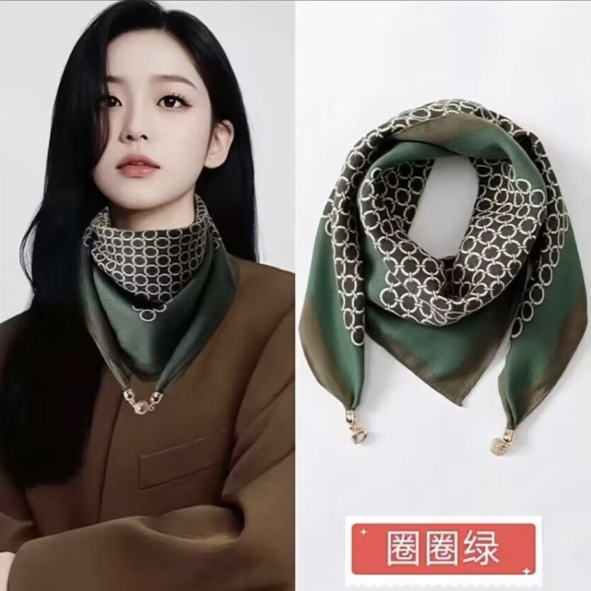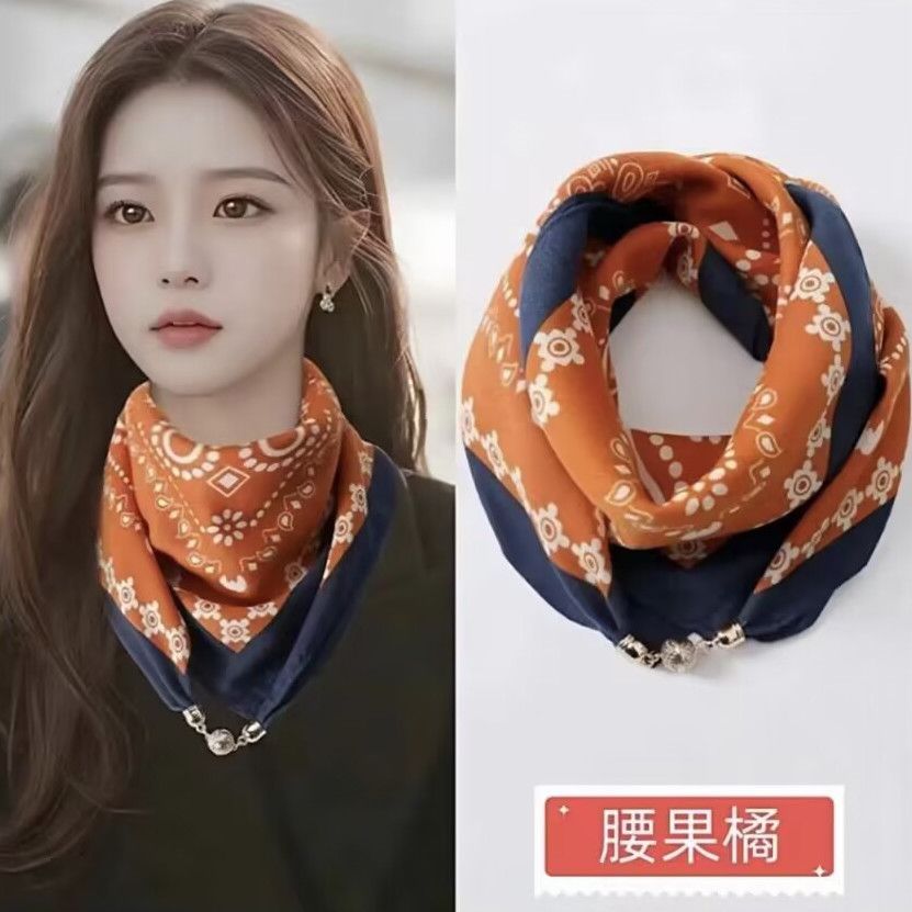 新款磁吸扣丝巾女薄款方巾冬季懒人吊坠围巾围脖装饰时尚百搭护颈 - 星火绫罗
