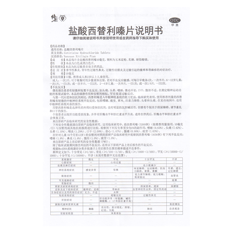 您的位置:他他商城  >   >  正品包邮】修正 盐酸西替利嗪片 10mg*18片/盒
