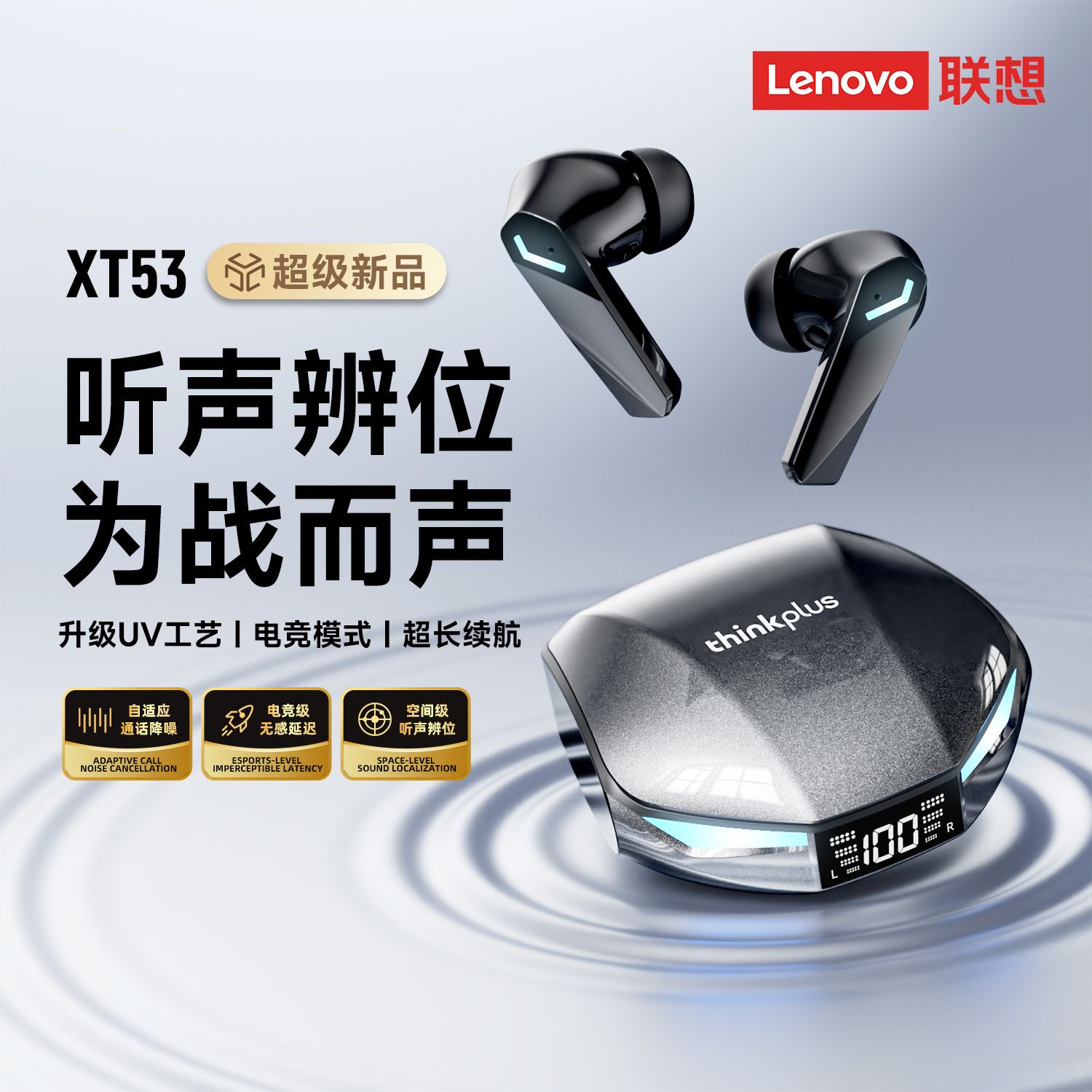 联想无线蓝牙耳机XT53新款电竞游戏无感延迟入耳式跑步降噪运动 - 严选音频