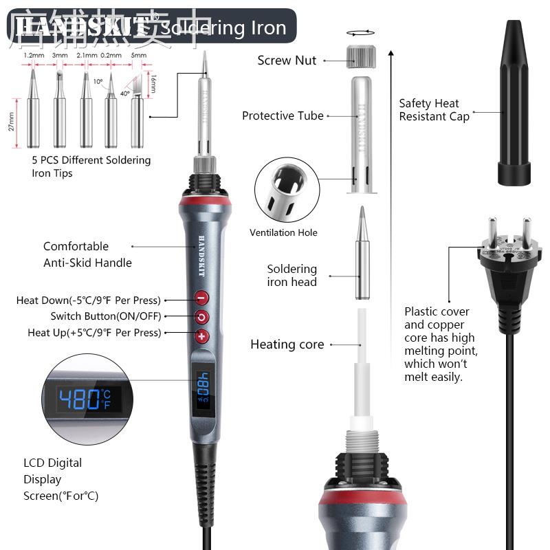 90W大功率数显LCD电烙铁110V / 220V可调温度4芯焊锡handskit - 汇丰五金商贸