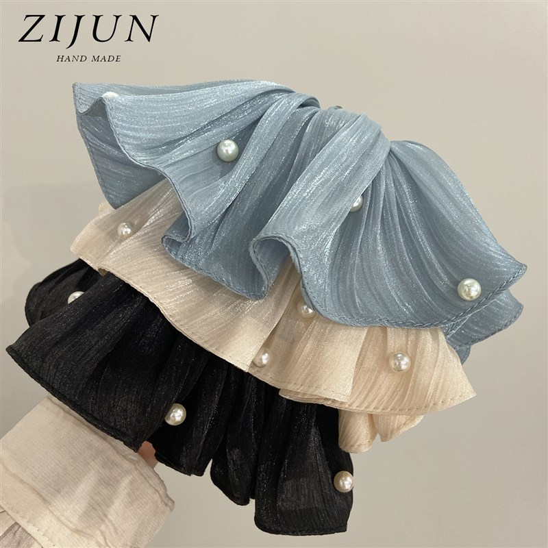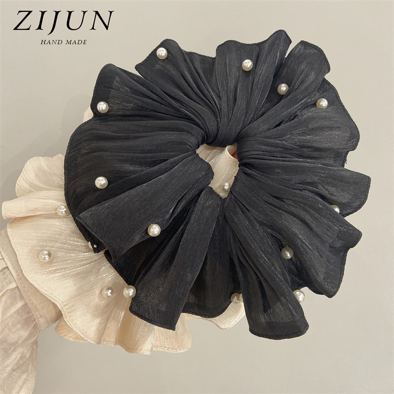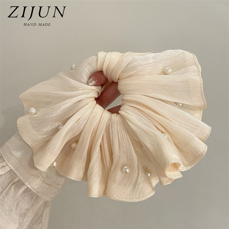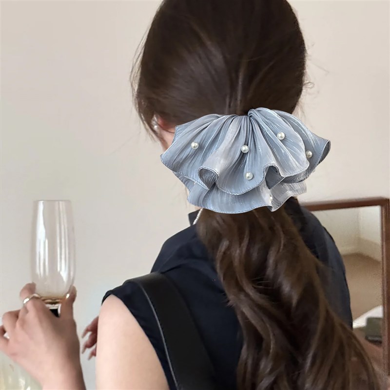 超仙缎光网纱裙摆大肠发圈v头花女高级感流光丝滑头绳马尾珍珠发 - tb6931608256