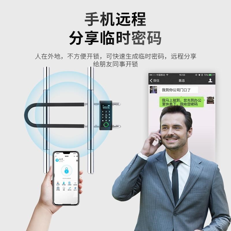 您的位置:他他商城  >   >  玻璃门指纹U型锁密码锁双开门商铺店面办公楼U型挂插锁.电子智能