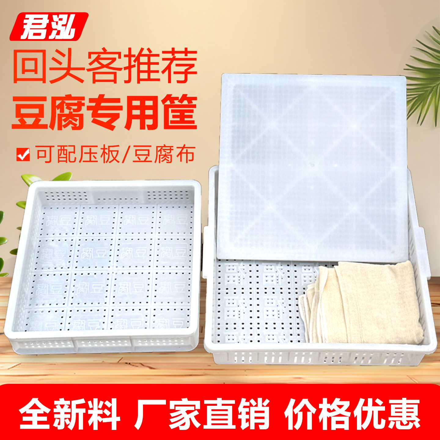 您的位置:他他商城  >   >  塑料豆腐筐正方形豆腐框一整套加厚豆腐模具压做老豆腐工具带压板