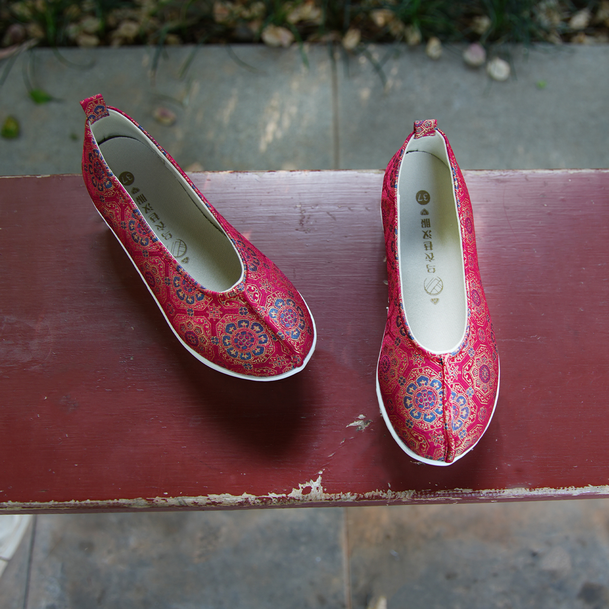 您的位置:他他商城  >  鞋子  >  乌衣巷明制登云履汉服鞋女红色宝相花古风绣花鞋厚底增高古装布鞋