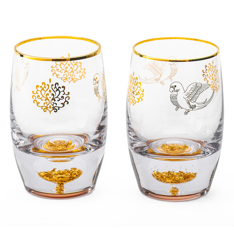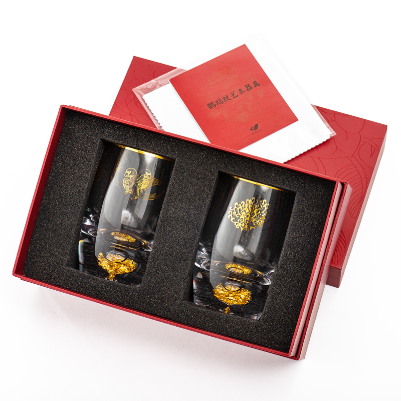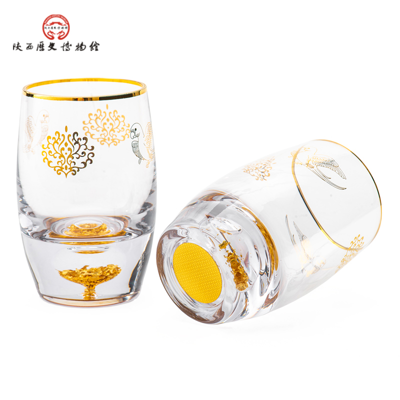 陕西历史博物馆文创鹦鹉纹水晶玻璃酒杯金箔杯底杯子对杯礼盒装 - 陕西历史博物馆旗舰店