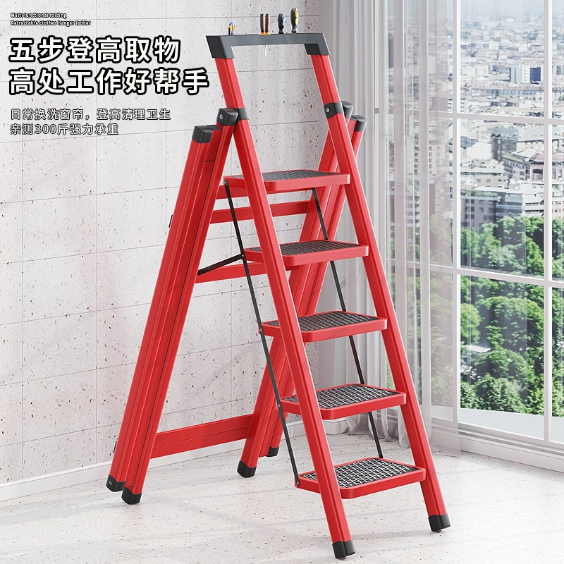 梯子晾衣架两用家用免安装伸缩加厚人字梯折叠多功能晾衣架梯 - 天河箱包行
