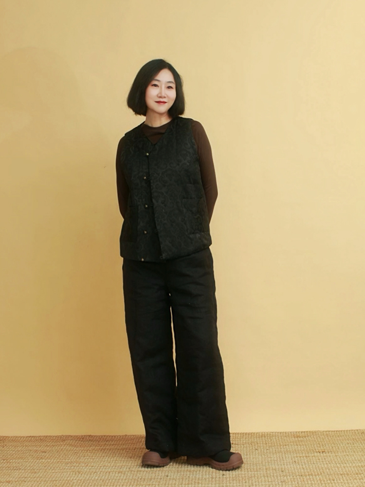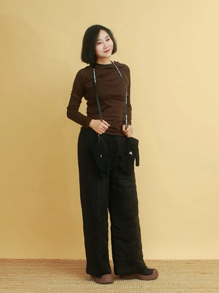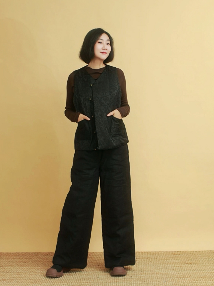 姜欢设计 冬款黑色纯麻夹棉厚款又拽又酷的阔腿大棉裤老棉裤 - 姜欢 布麻范 原创设计自愈系女装