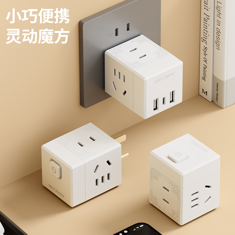 魔方插座USB充电床头插排插线板接线板多功能家用转换器办公排插