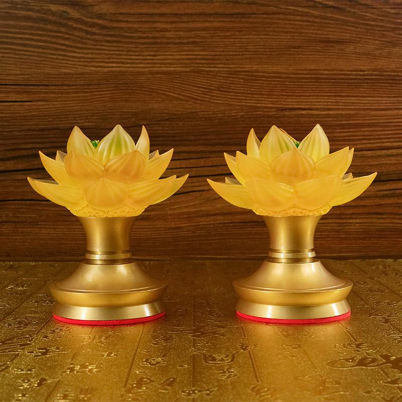 充电莲花灯佛供灯神台佛前供灯古法琉璃纯铜插电供佛灯led长明灯 - 梵雨堂