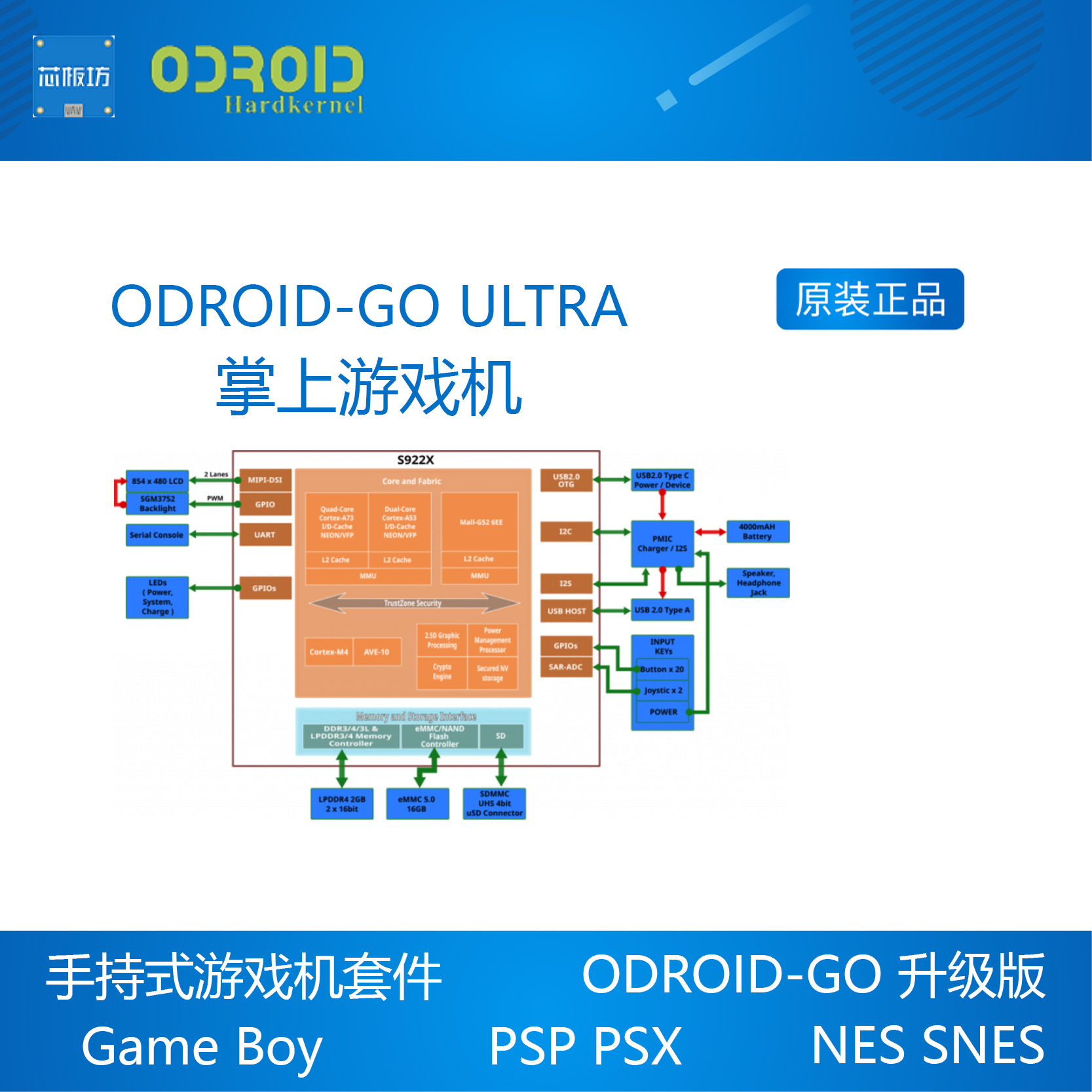 ODROID-GO ULTRA ODROID-GO ULTRA 开源游戏机掌机 Amlogic S922X - 芯板坊