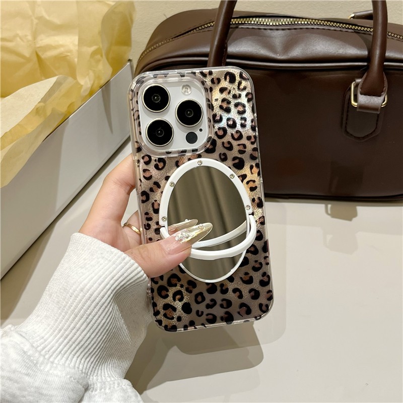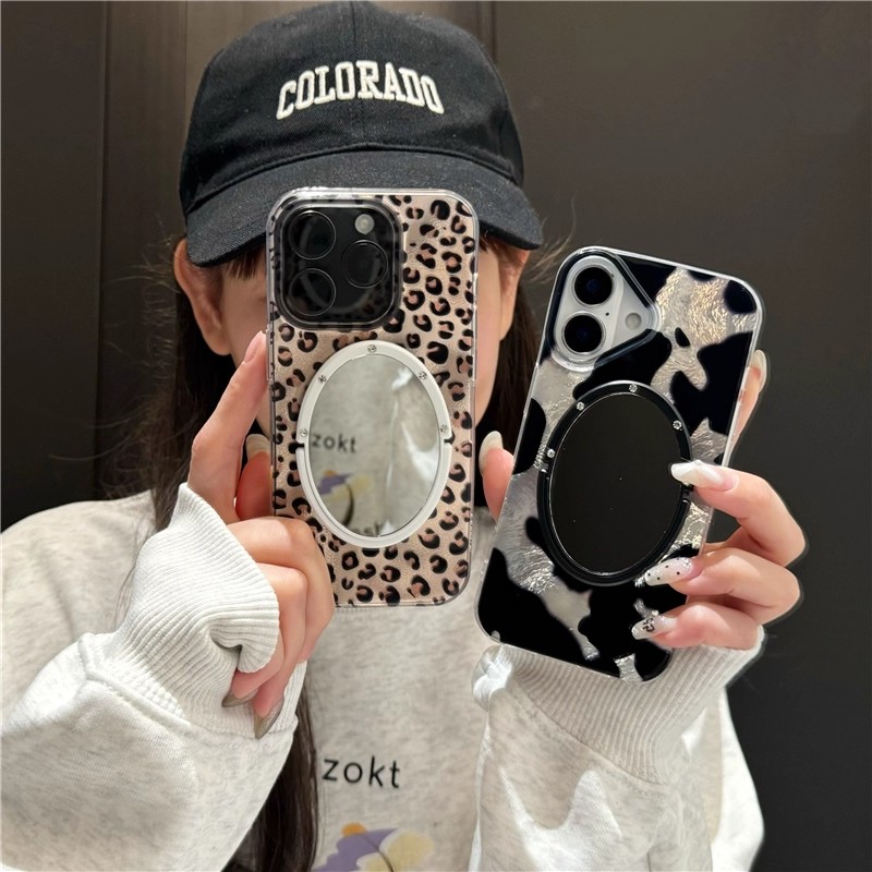 豹纹锡纸纹适用iphone17/16promax镜子手机壳奶牛纹斑块苹果13/14/15promax冰川纹个性创意新款晕染美拉德豹 - 钻之壳