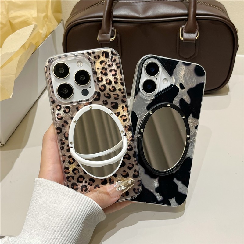 豹纹锡纸纹适用iphone17/16promax镜子手机壳奶牛纹斑块苹果13/14/15promax冰川纹个性创意新款晕染美拉德豹