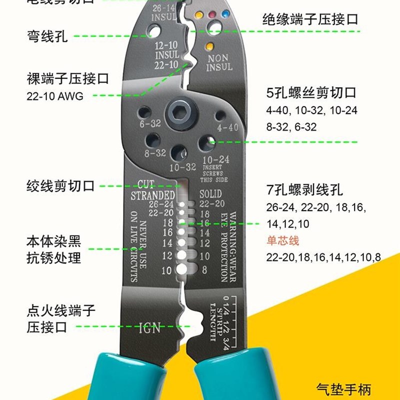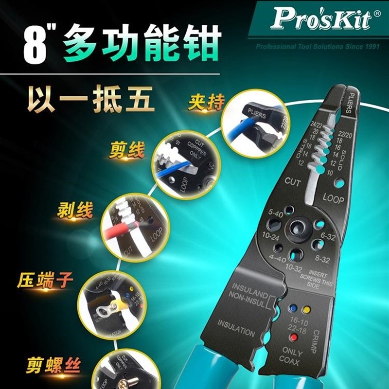 宝工CP-412G多功能剥线钳端子压接钳螺丝剪切钳电工拔皮钳CP-413G - 山水摄影铺