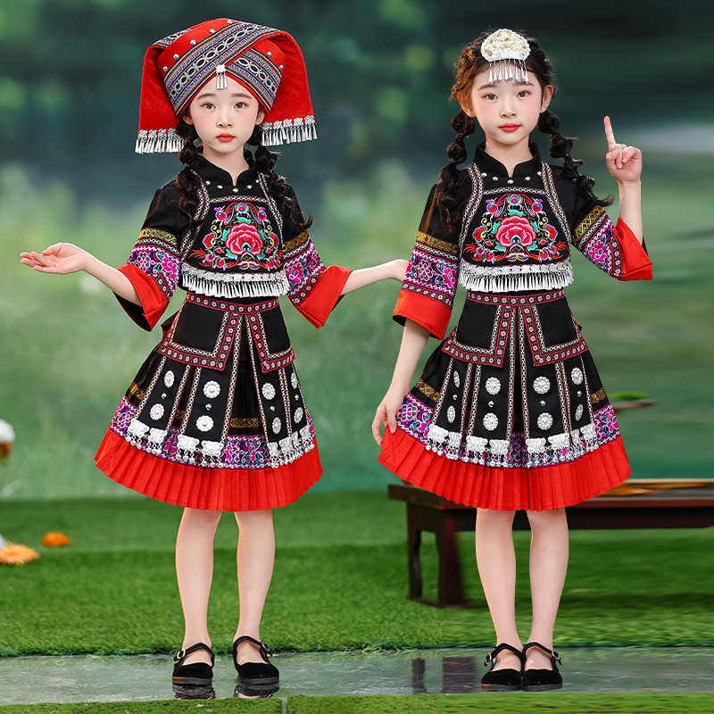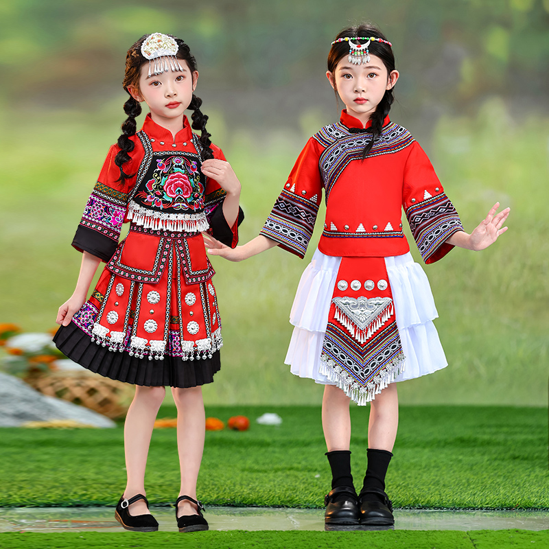 三月三广西壮族少数民族服装女童哈尼族服饰女孩土家族瑶族演出服 - hisencure旗舰店