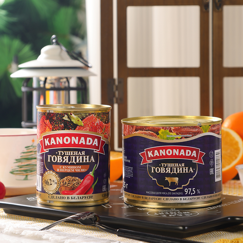 白俄罗斯进口牛肉罐头肉原装卡诺纳达官方原味辣椒速食下酒菜野餐