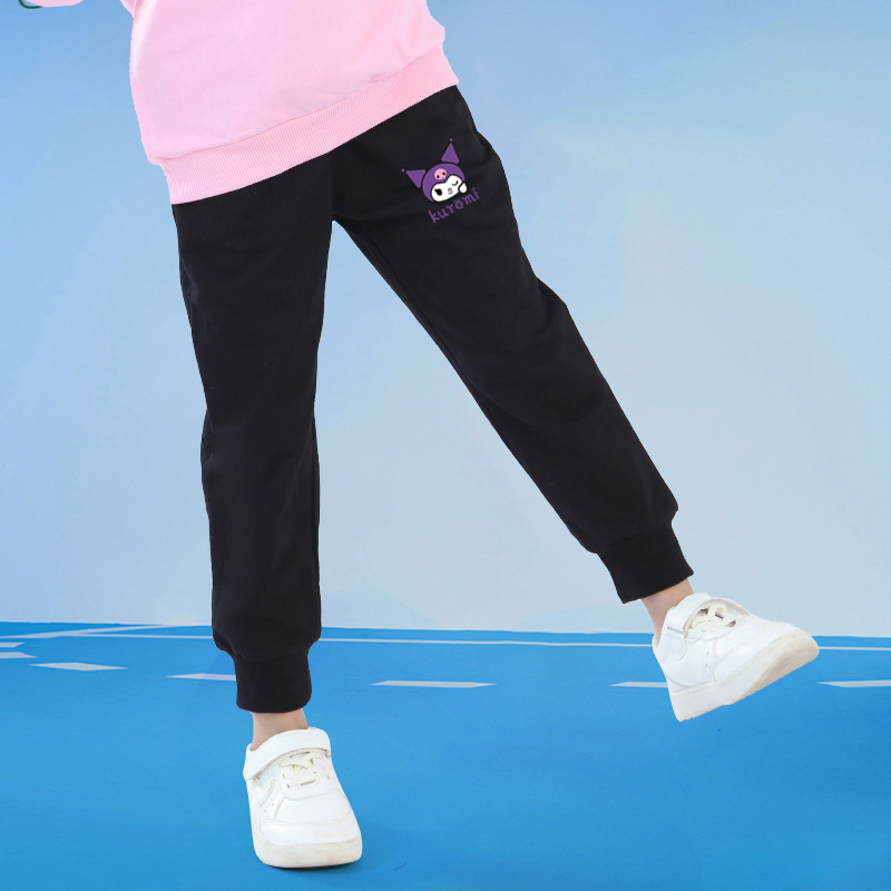 库洛米女童裤子薄绒一体绒纯棉儿童运动裤黑色小女孩卫裤2025新款 - 佐丁路品牌童装工厂店