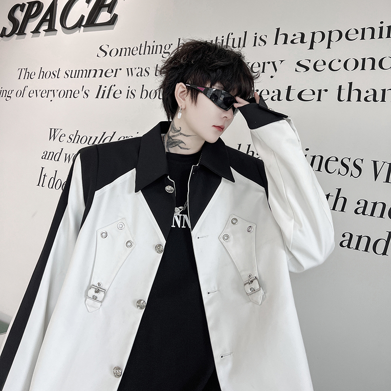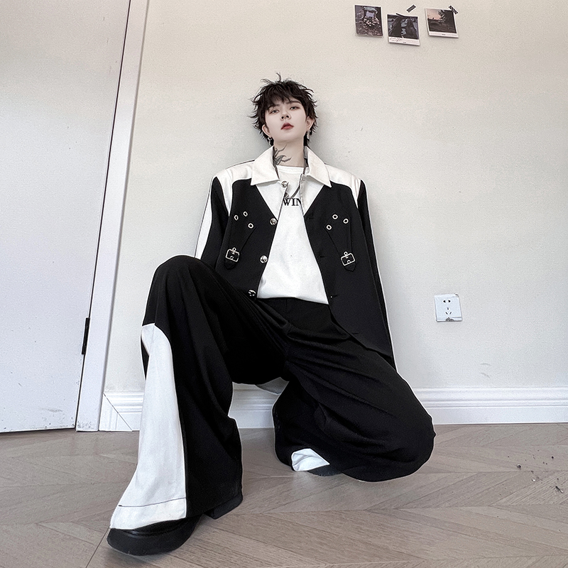 秋季小众黑色撞色结构垫肩夹克男外套高级感痞帅网红上衣炸街韩版 - 我爱文艺美型男