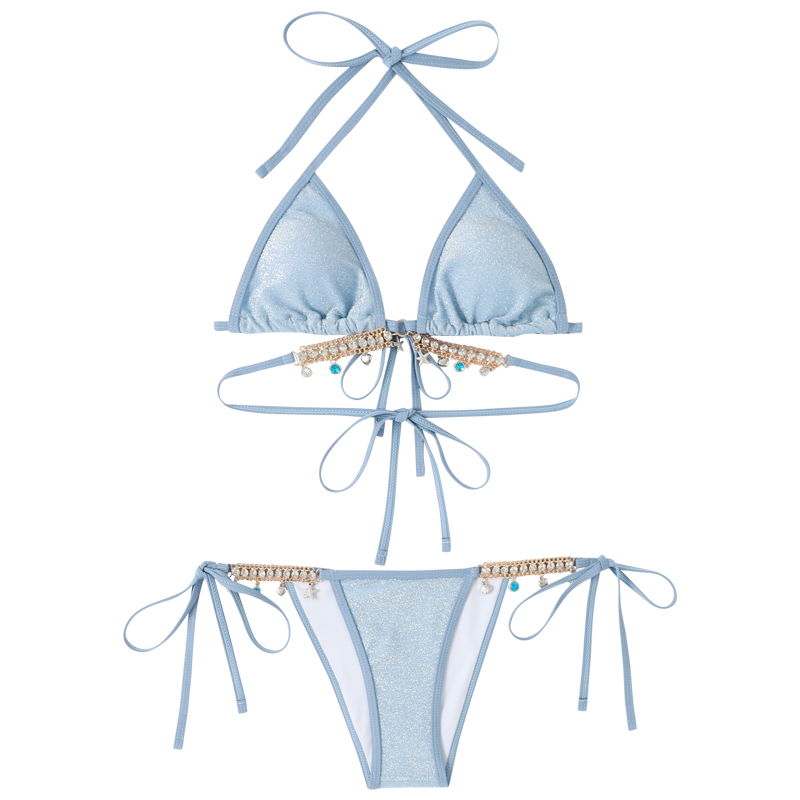 您的位置:他他商城  >  文体  >  泳衣女人鱼钻链欧美纯欲风绑带三角比基尼三点式ins 性感度假泳装