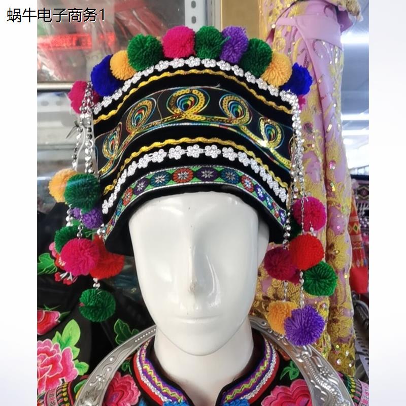 白族佤族哈尼族拉祜族女帽子成人舞蹈演出头饰少数民族舞台表演帽 - 蜗牛电子商务1