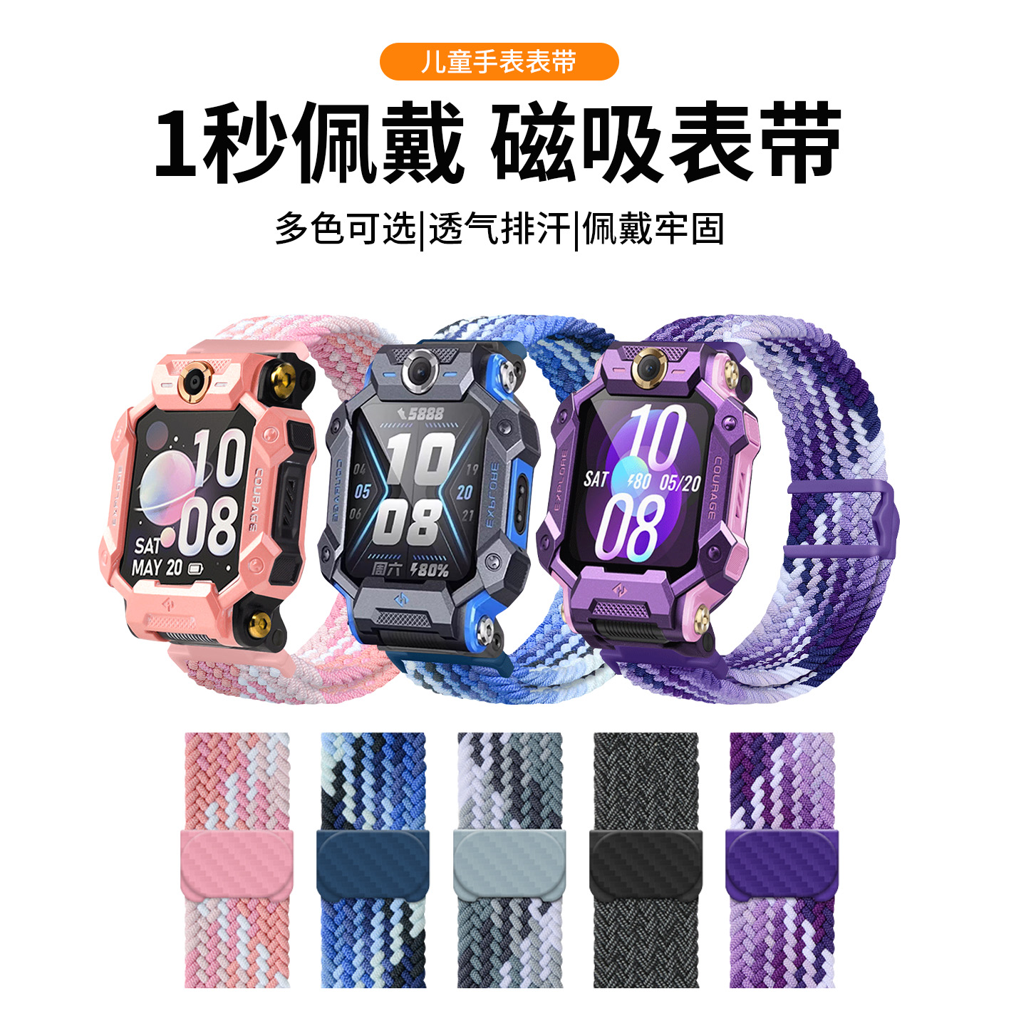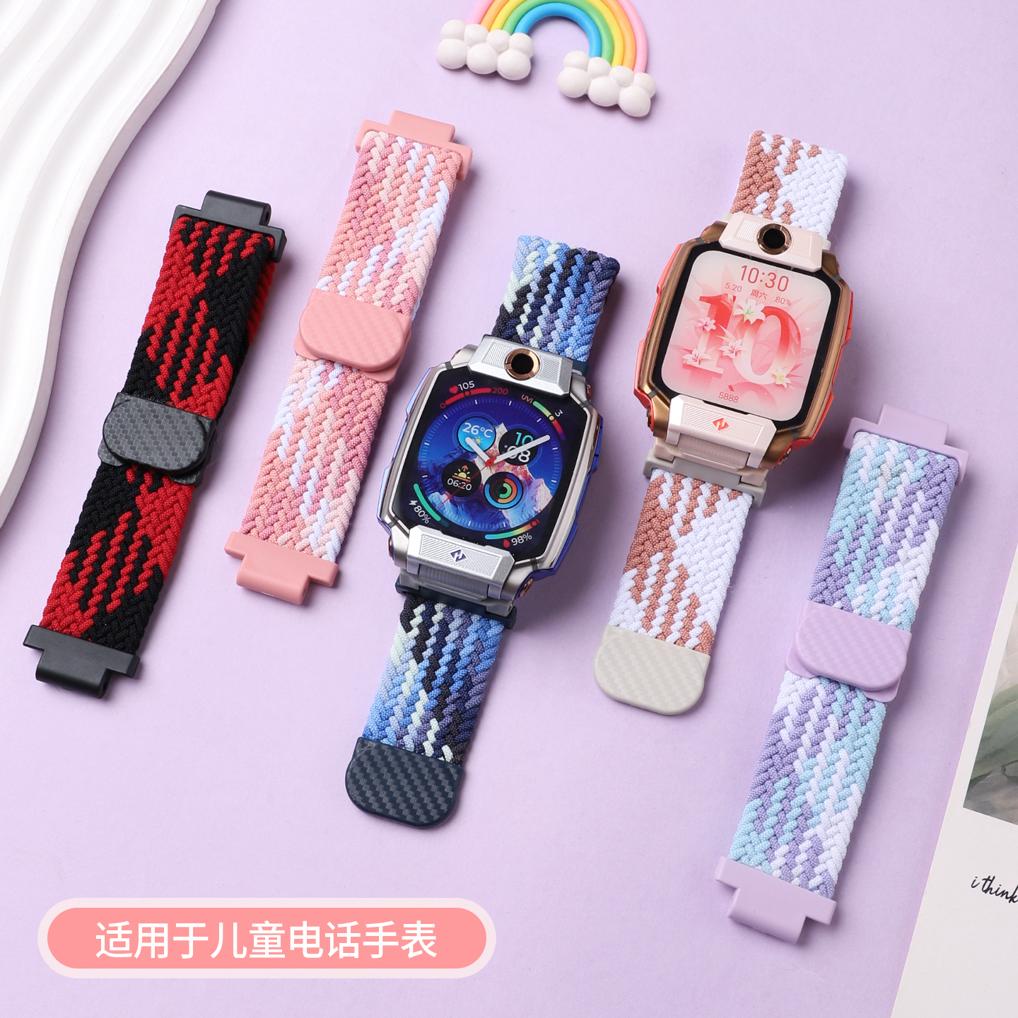 适用小天才电话手表表带z10/z9/z8/z7/z11少年版卡通z5pro编织z6磁吸q2a腕带Q1A智能运动D2儿童D3S/U3通用Q1Y - 悦同旗舰店
