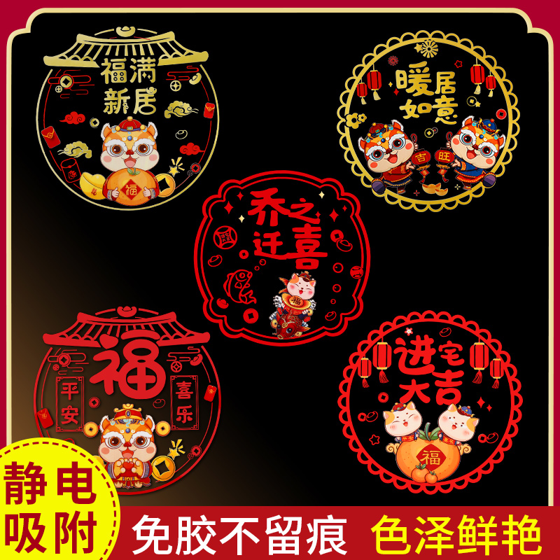乔迁之喜窗花贴入宅对联2024新款新居搬新家大门新V房墙贴喜迁新