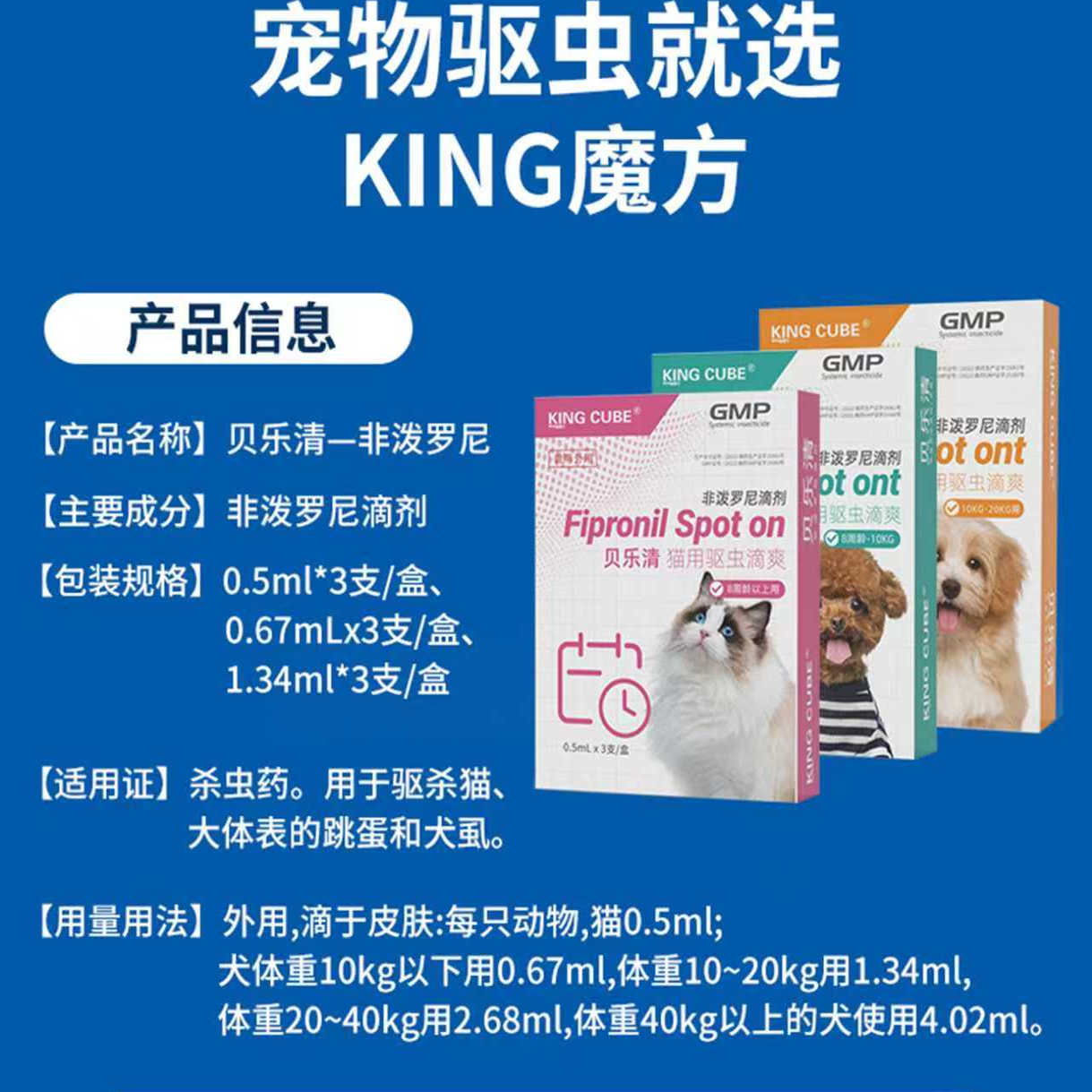 king魔方贝乐清猫咪驱虫药内外一体幼狗狗犬跳蚤蜱虫宠物专用滴剂 - KING CUBE宠物用品旗舰店