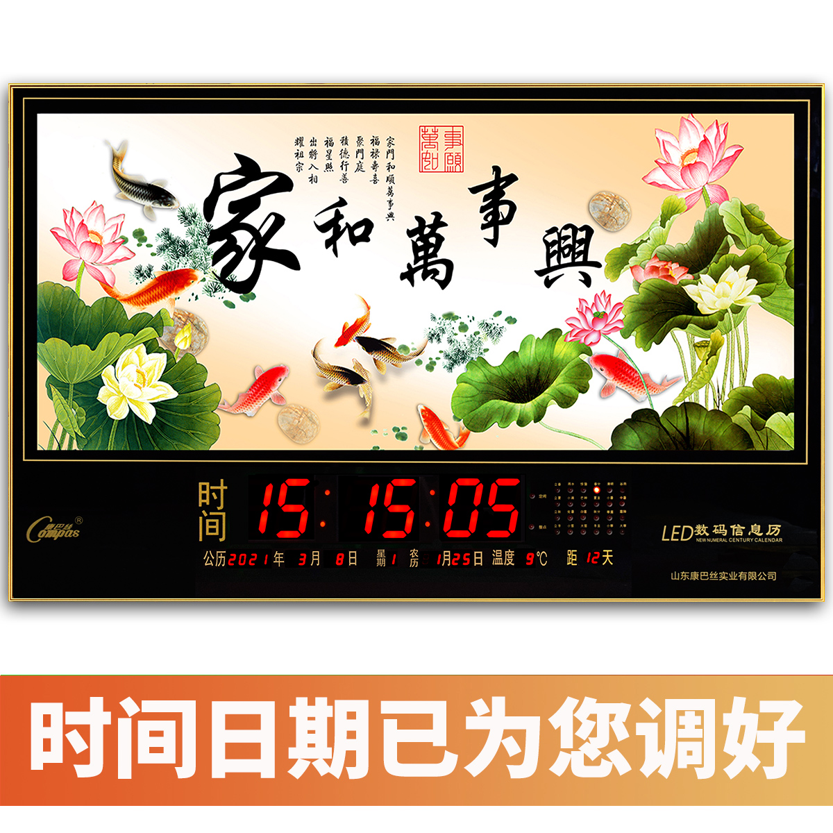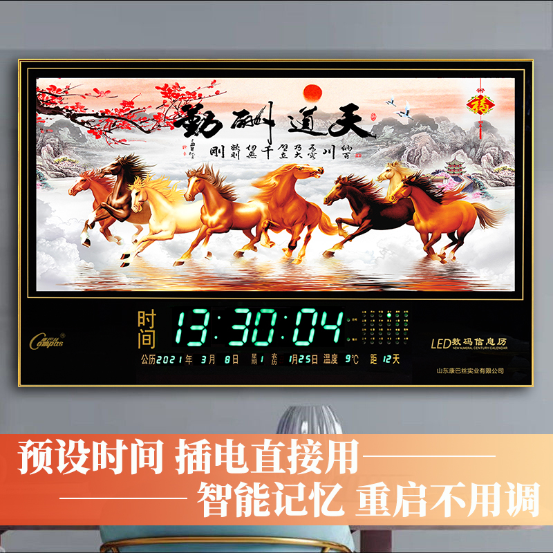 康巴丝电子万年历wifi挂钟大尺寸家用挂墙上插电夜光数码日历钟表 - 时运来家居馆